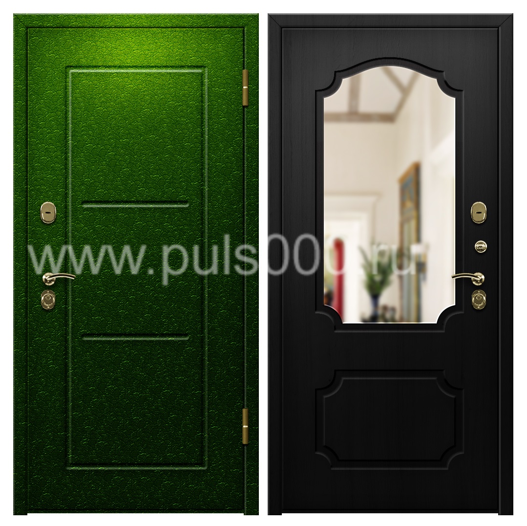Зеленая порошковая квартирная дверь с шумоизоляцией PR-1128